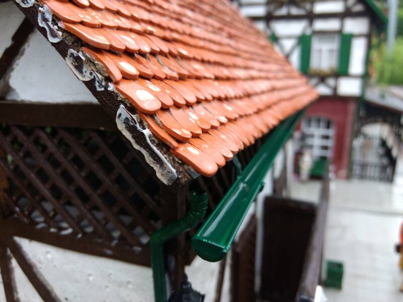 Seit zwei Tagen regnet es nun. An einen Betrieb der Almkanalbahn ist derzeit nicht zu denken. Die Gebäude widerstehen der Nässe Recht gut - nur ein paar Regenrinnen sind wieder anzukleben.