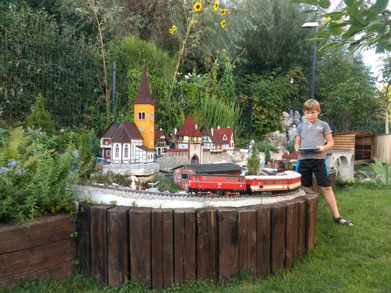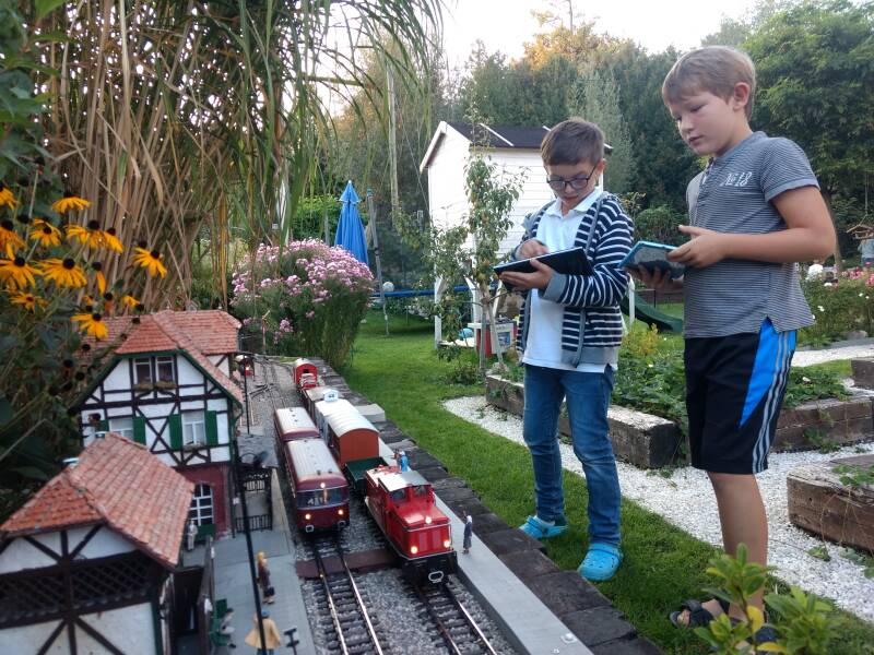 Wir waren letzten Samstag Mittag, kurz vor 12 Uhr, mit dem Fahrrad bei Ihrer echt tollen Zugsanlage!!! Danke, dass Sie die Züge auch noch für uns fahren haben lassen ... unsere Tochter war besonders begeistert!!! Wir haben nun Ihre auch sehr tolle und ausführliche homepage uns angesehen ... Hut ab vor Ihrer Leistung und Ihrer Ausdauer!!